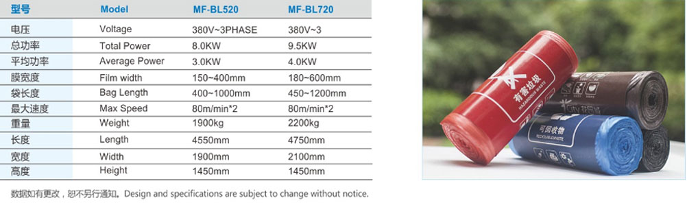 MF-BL520/720L2-AR 双线连卷垃圾袋制袋机